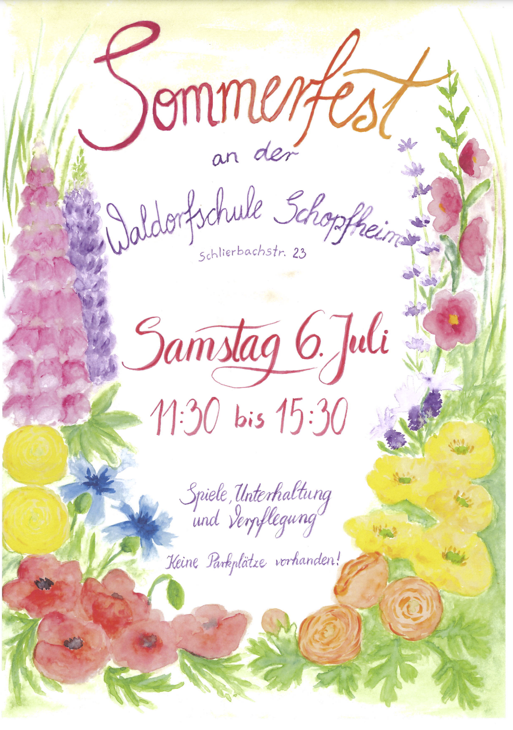 Am Samstag den 06.Juli ab 10:00 Uhr findet die Schulfeier statt. Ab 11:30 können Sie das Sommerfest besuchen.